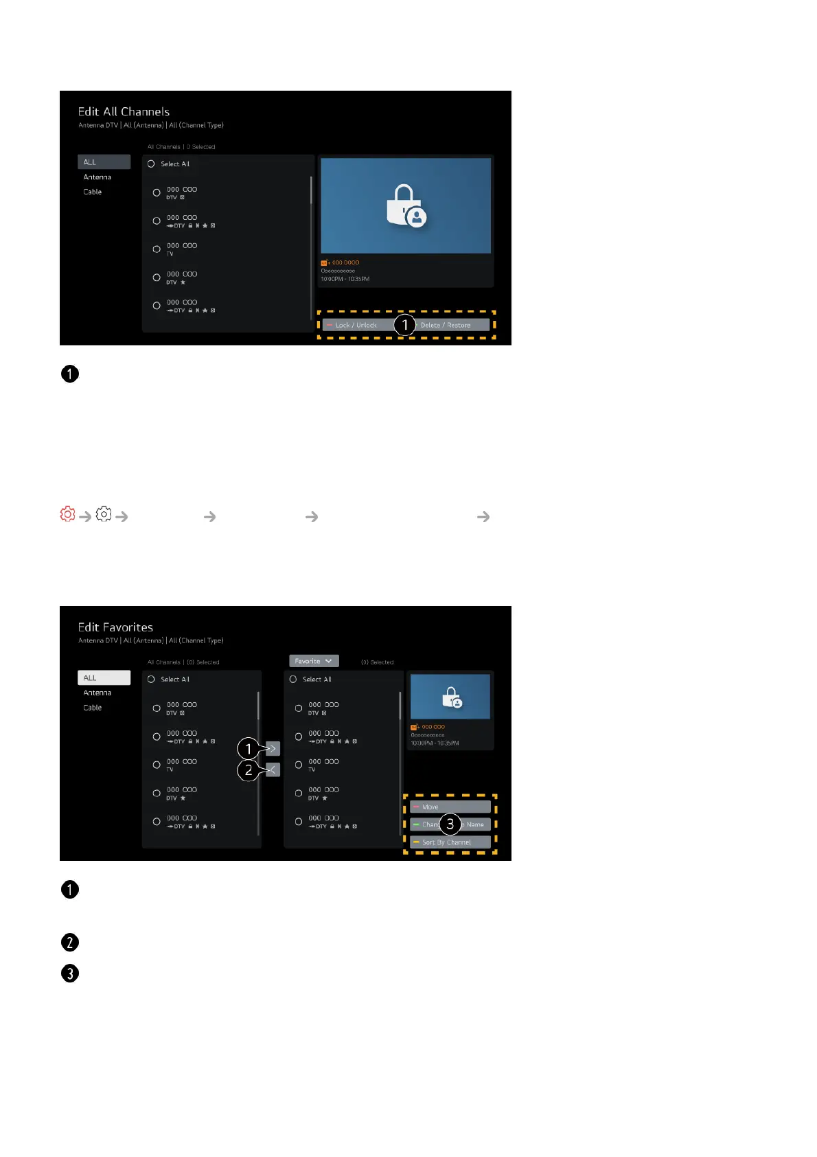 Lock / Unlock : Lock the selected channels or unlock the locked channels.