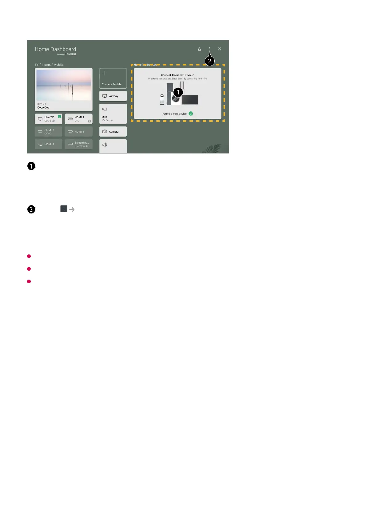 Connectable LG ThinQ devices and available functions may differ between mobile and TV.