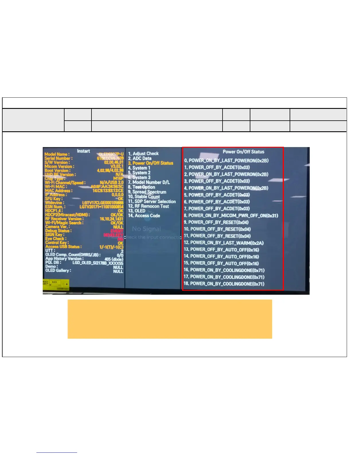 2. Check the entry into adjustment item 3 (Power On/Off Status)
