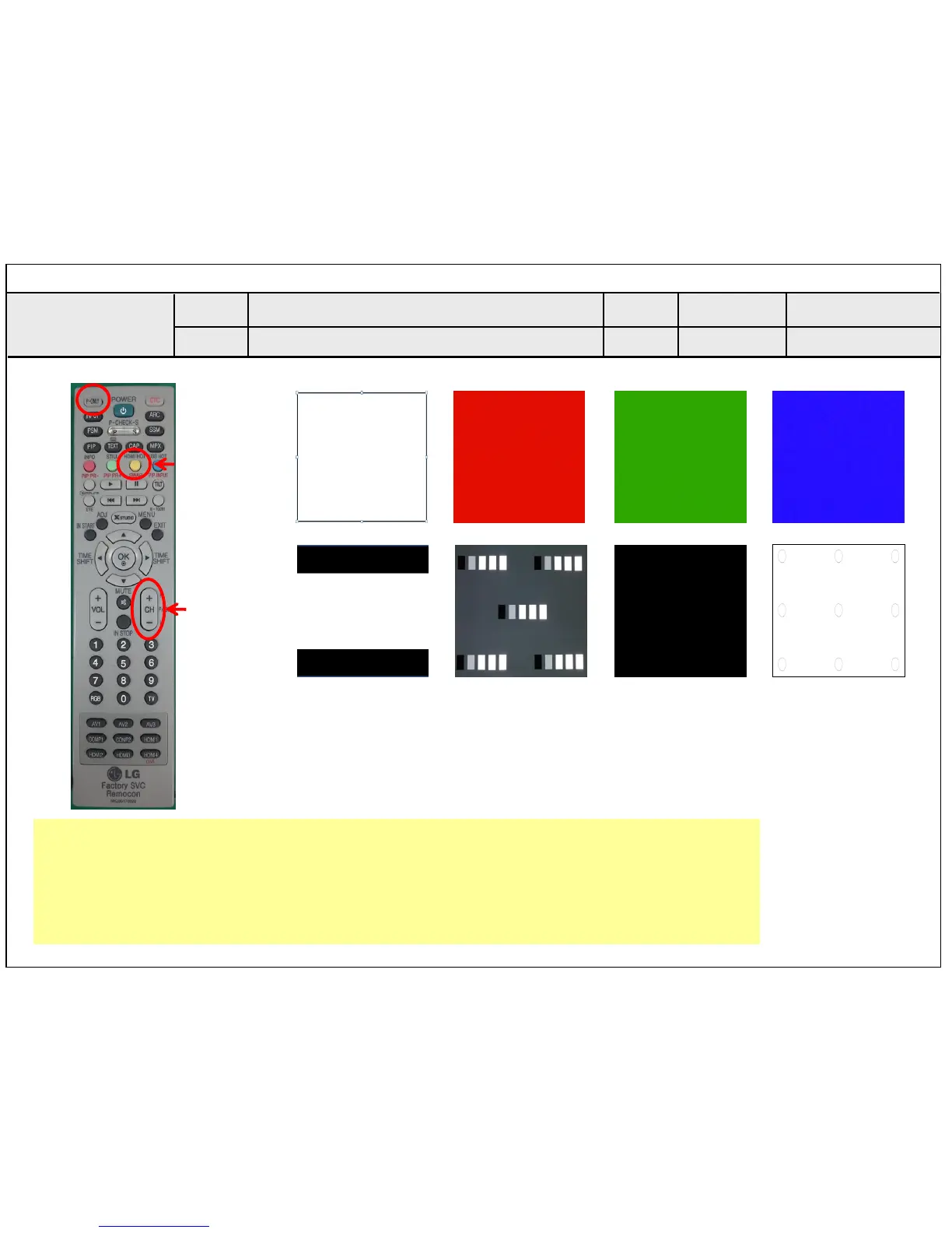 Checking item : 1. Defective pixel 2. Residual image 3. MODULE error (ADD-BAR,SCAN BAR..)