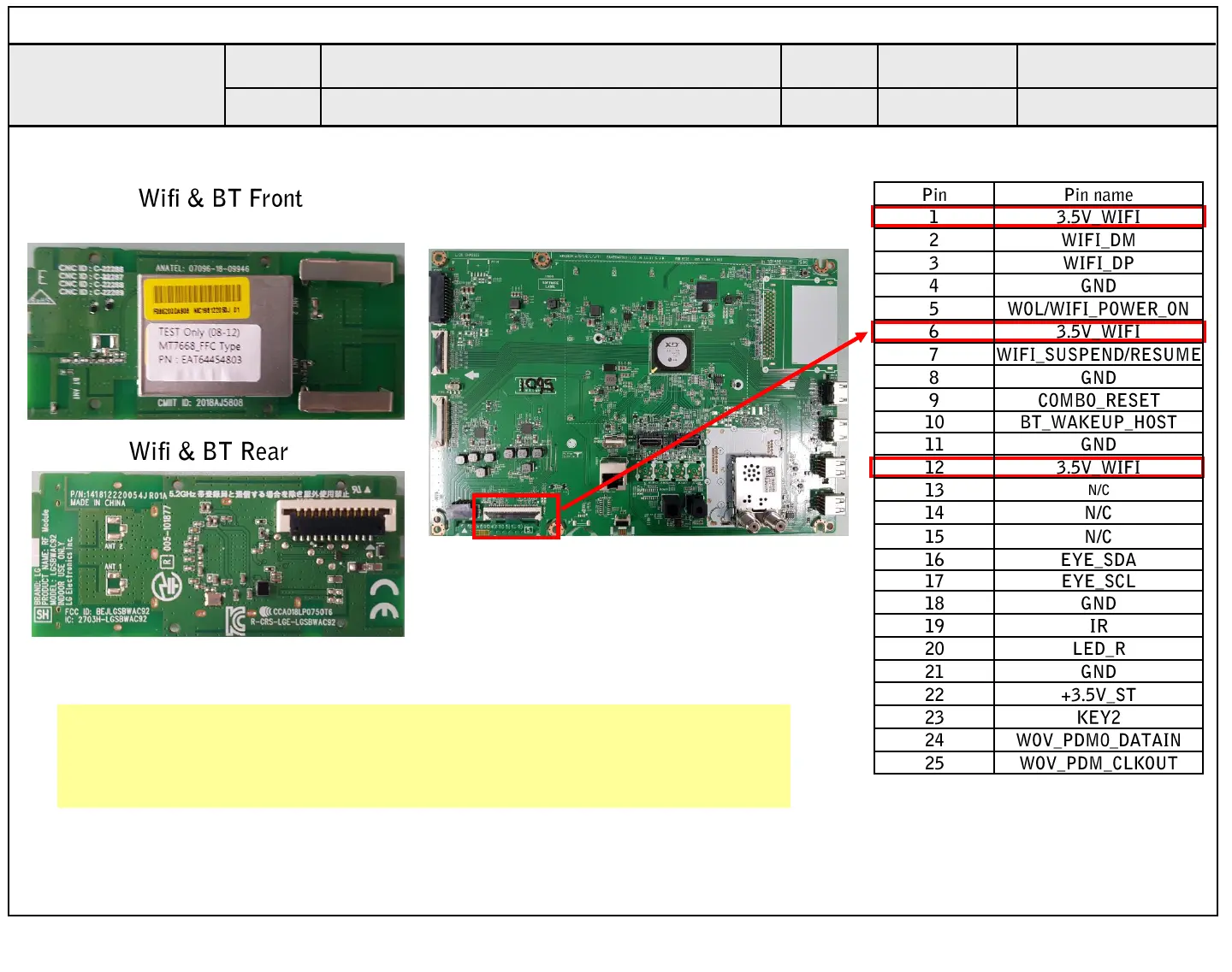 1. Check BT/Wifi cable condition between BT/Wifi assy & Main board.