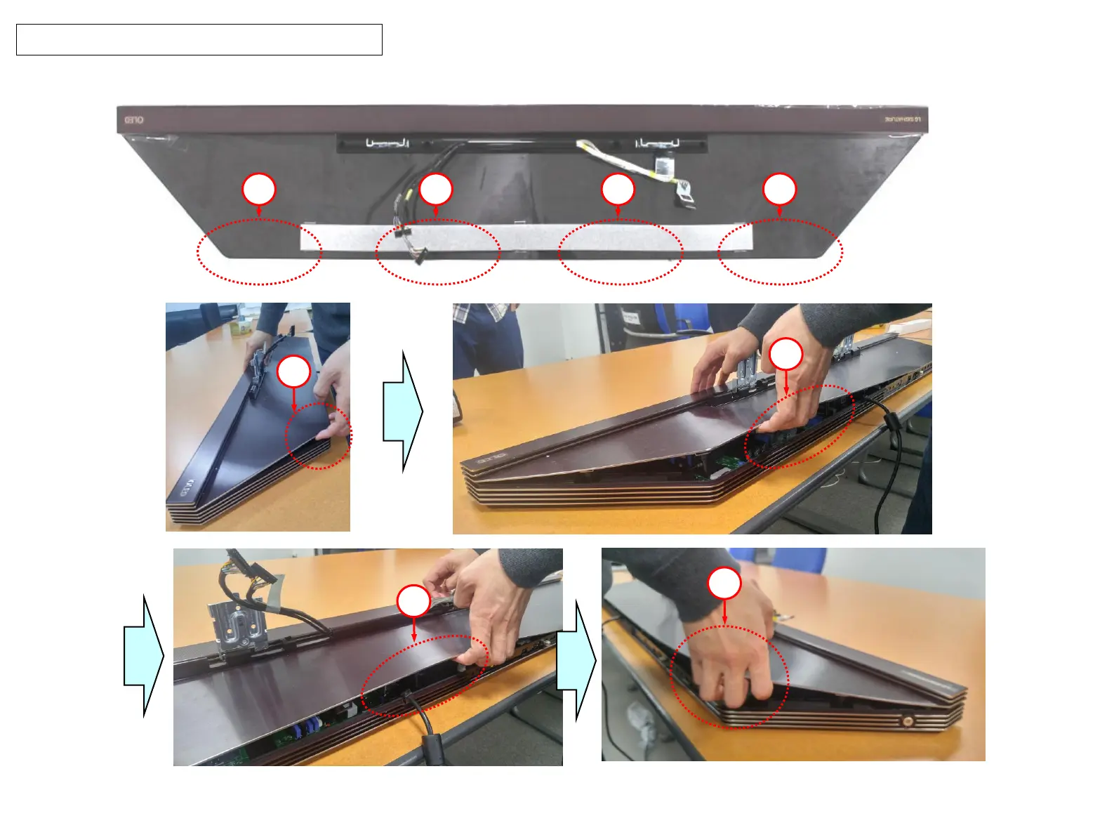 (8-1) ~ (8-4) Separate the inside latches of AV BOX Cover following the steps.