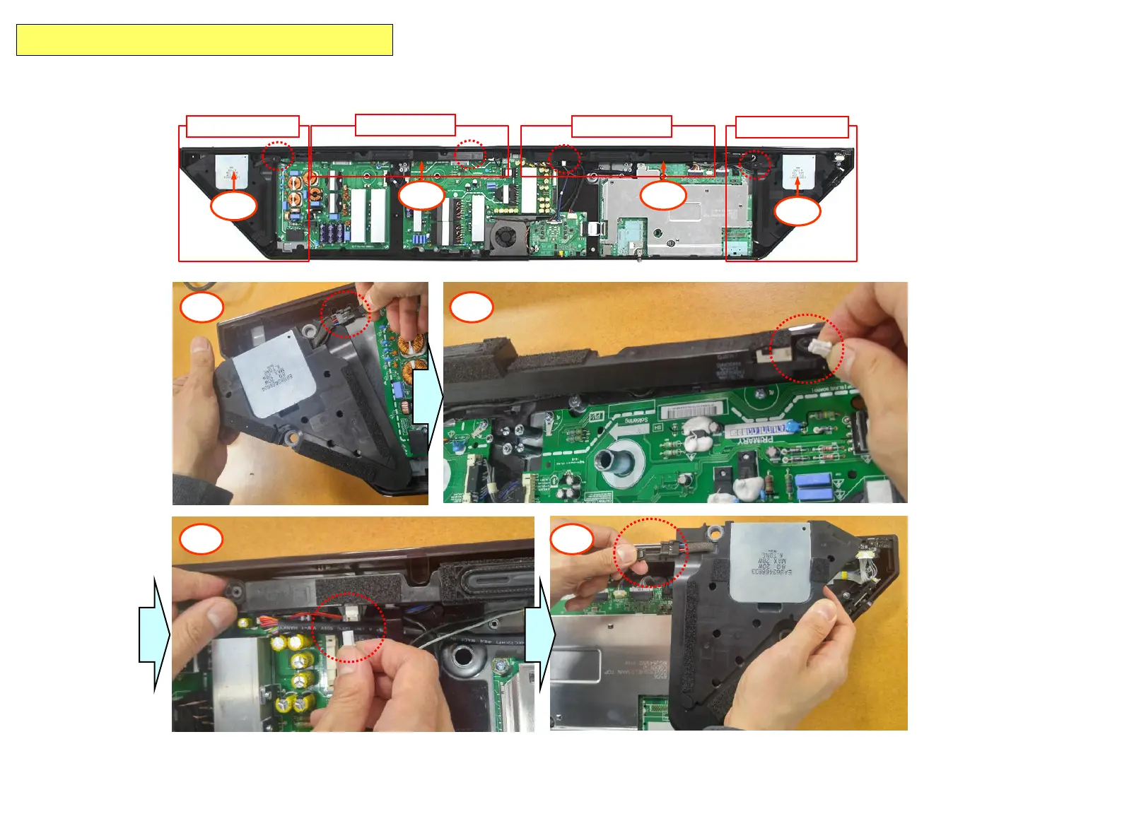 (5-1) ~ (5-4) Insert the Connector of Woofer & Front Speaker and then put it down in place.