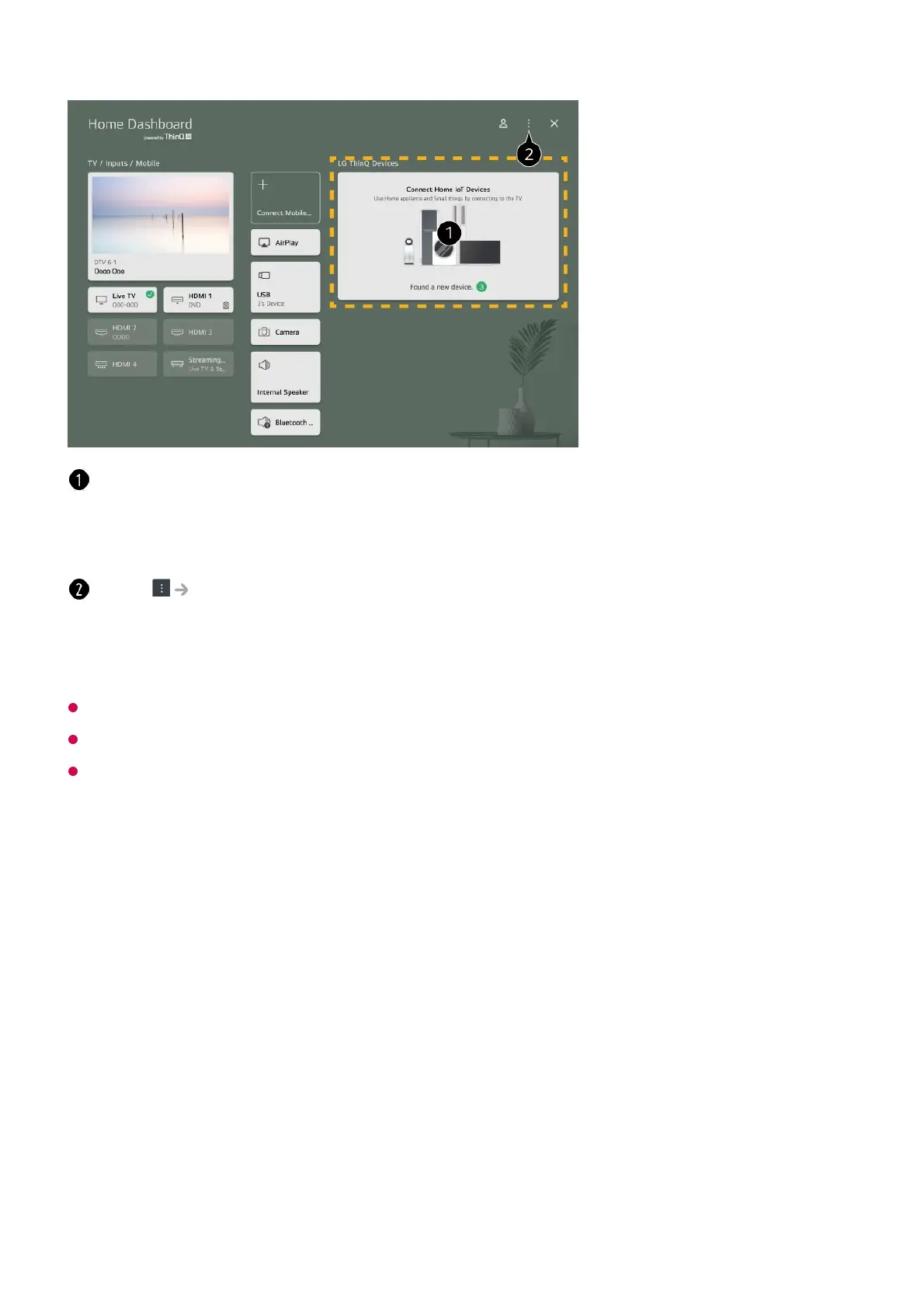 Connectable LG ThinQ devices and available functions may differ between mobile and TV.