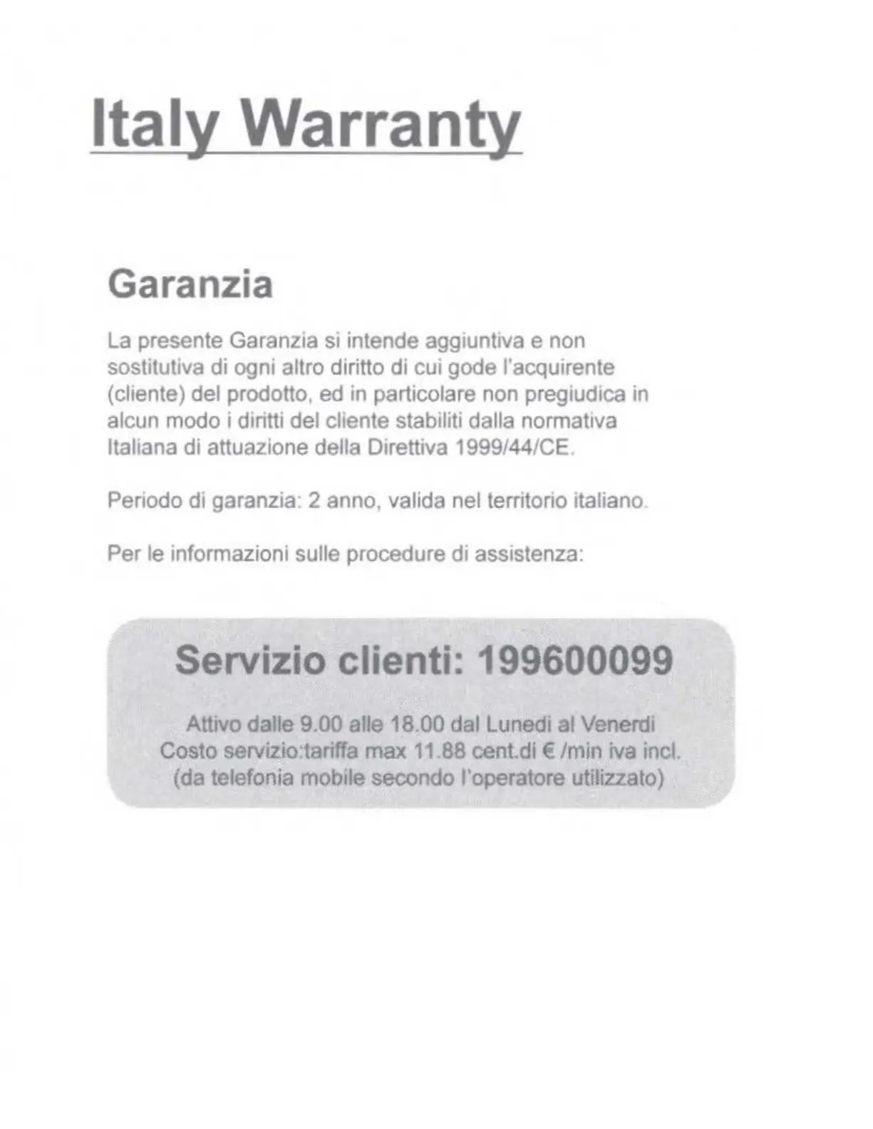Servizio clienti: 199600099
