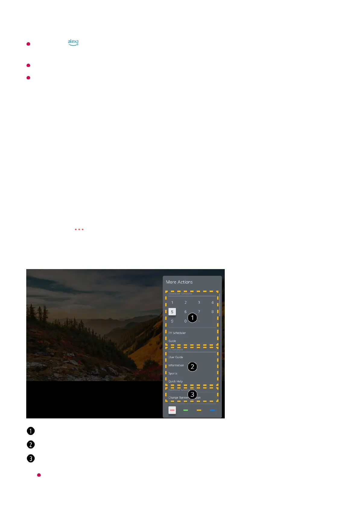 Using the remote control, select your desired button on More Actions displayed on