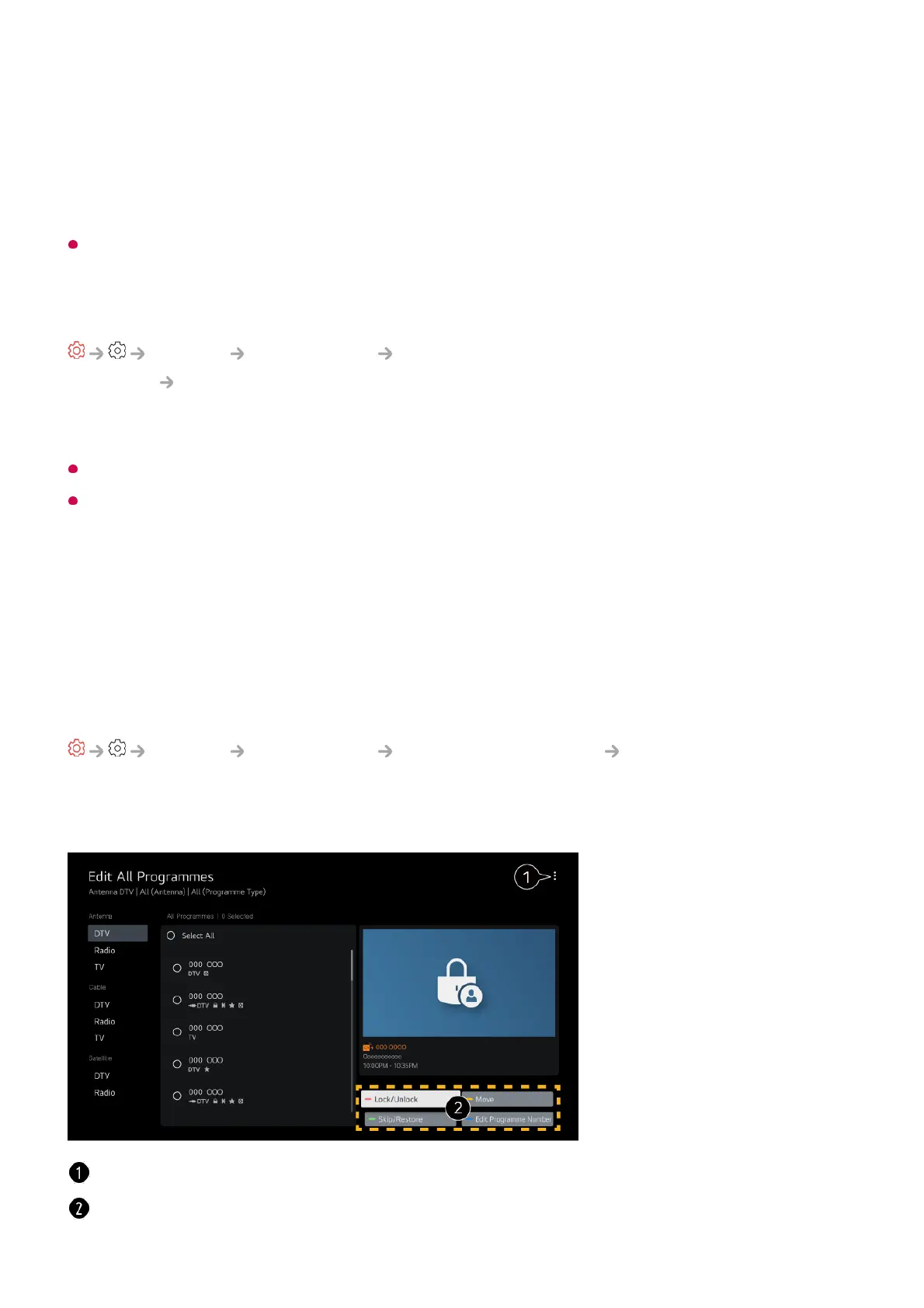 You can lock or unlock the selected programmes from all the stored programmes, or you