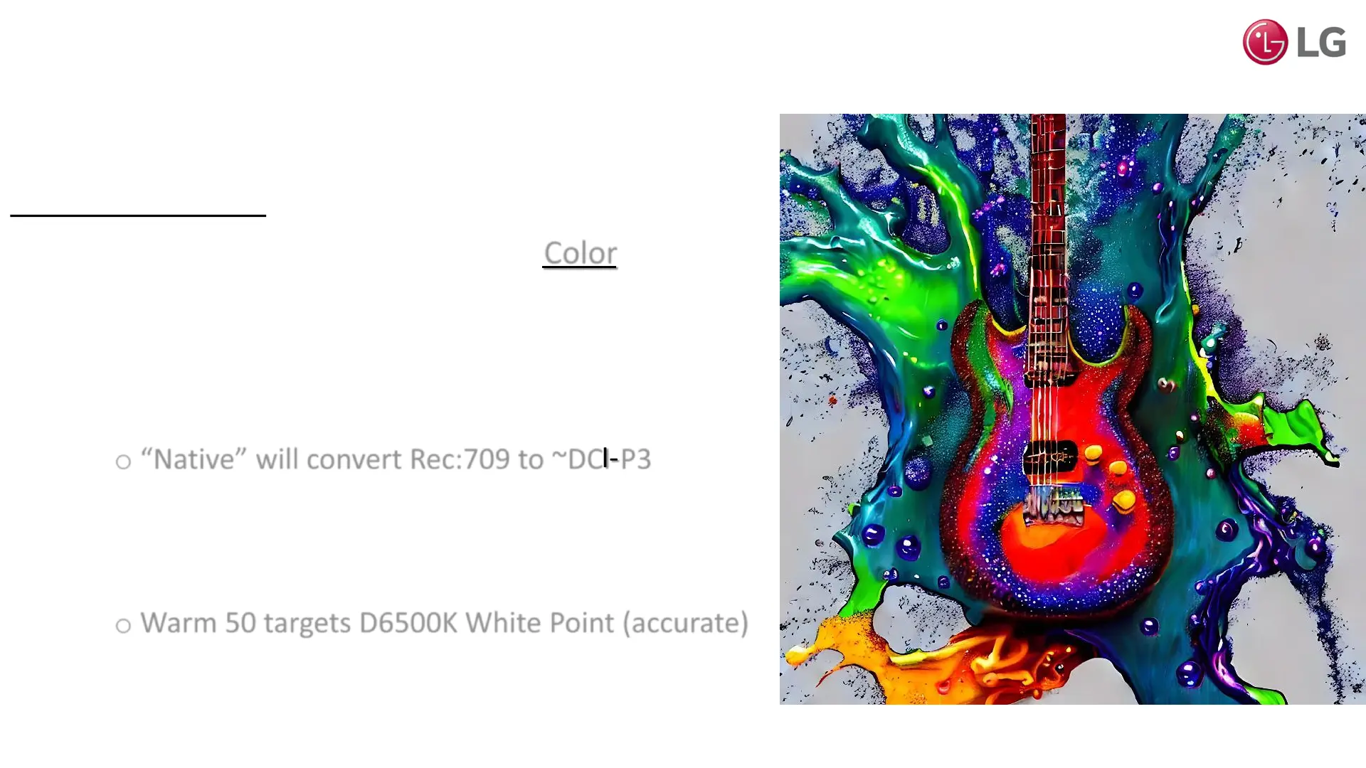 o Warm 50 targets D6500K White Point (accurate)