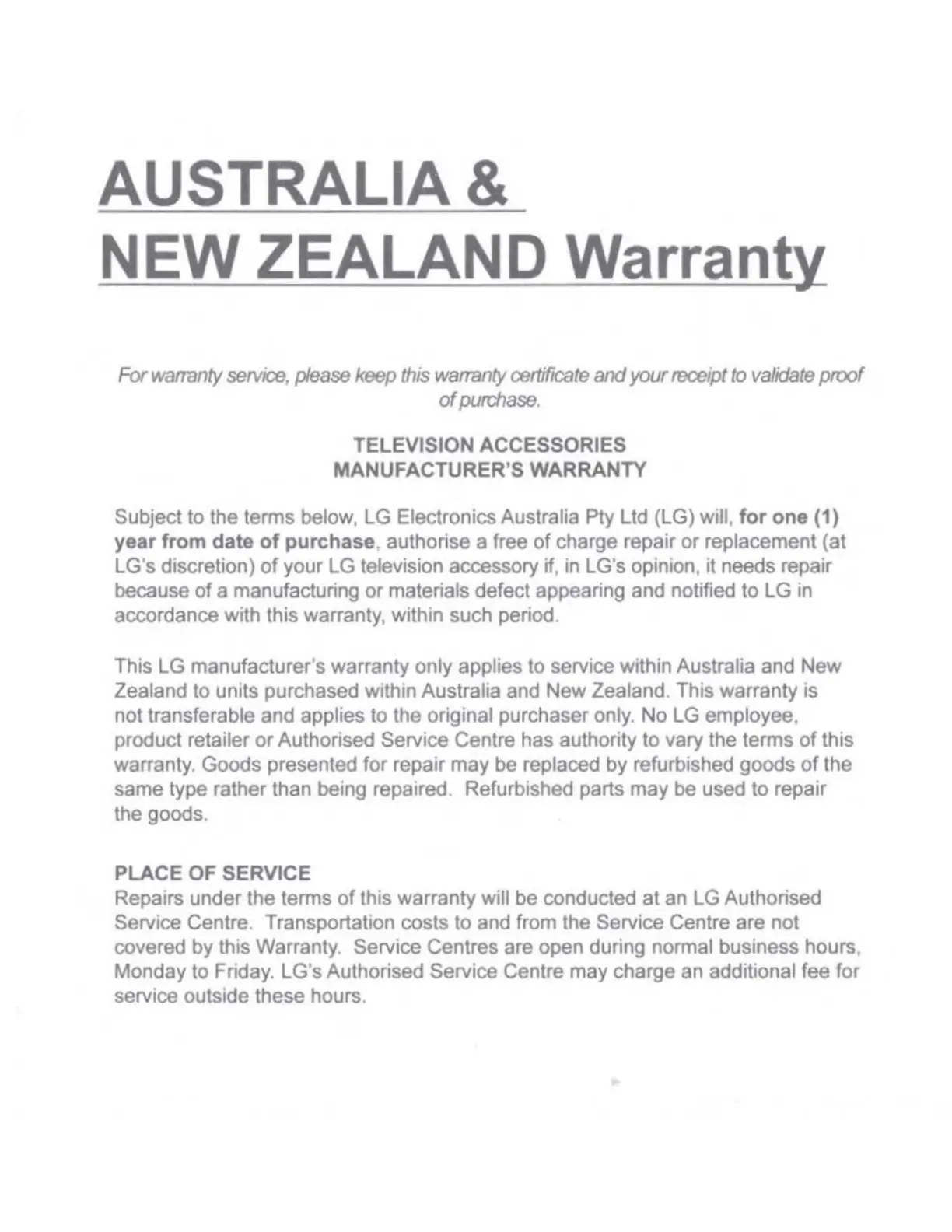 Subject to the terms below, LG Electronics Australia Pty Ltd (LG)