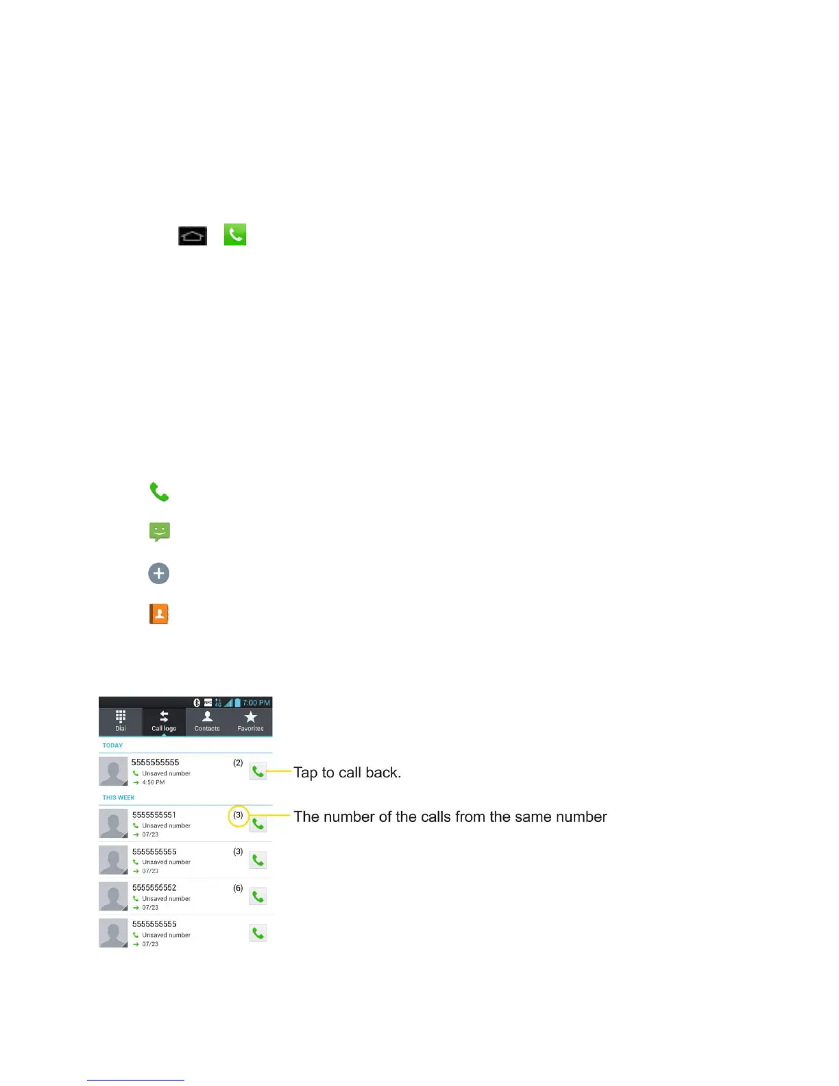 Tap an entry to view the date and time of the call and call duration. The following options are