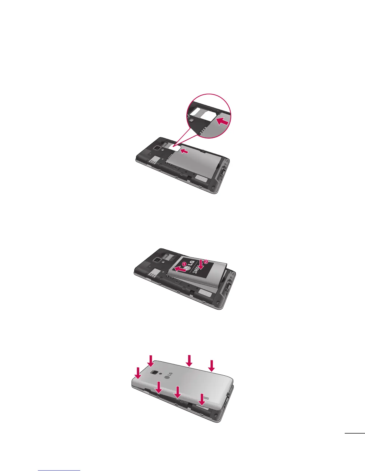 battery (1) and pressing it down until it clicks into place (2).