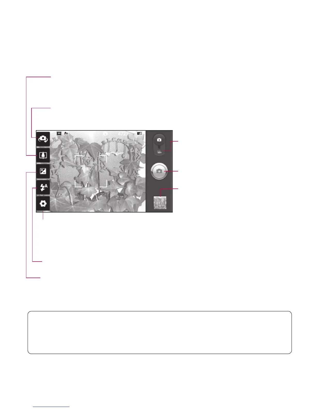 Flash - Allows you to turn on the flash when taking a photo in a dark place.
