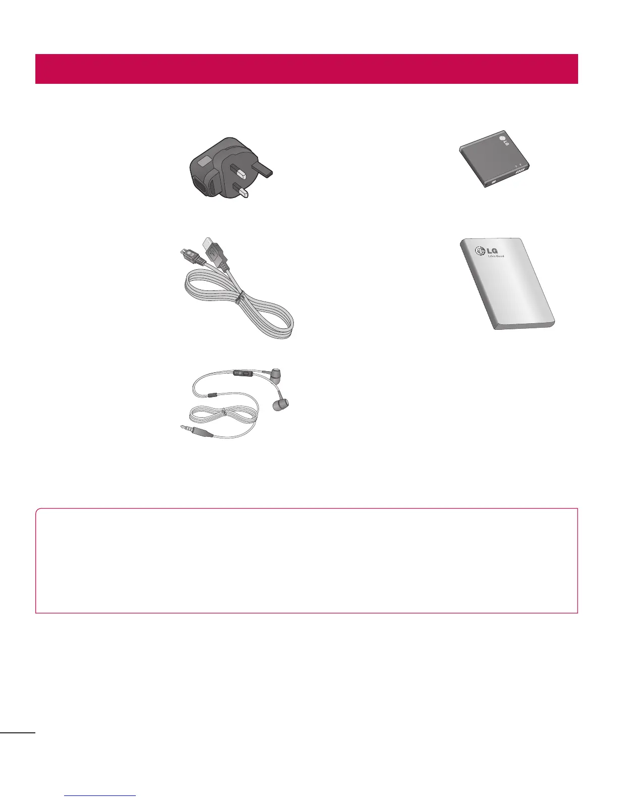 TheseaccessoriesareavailableforusewiththeLG-P990.(Items described below may be optional.)