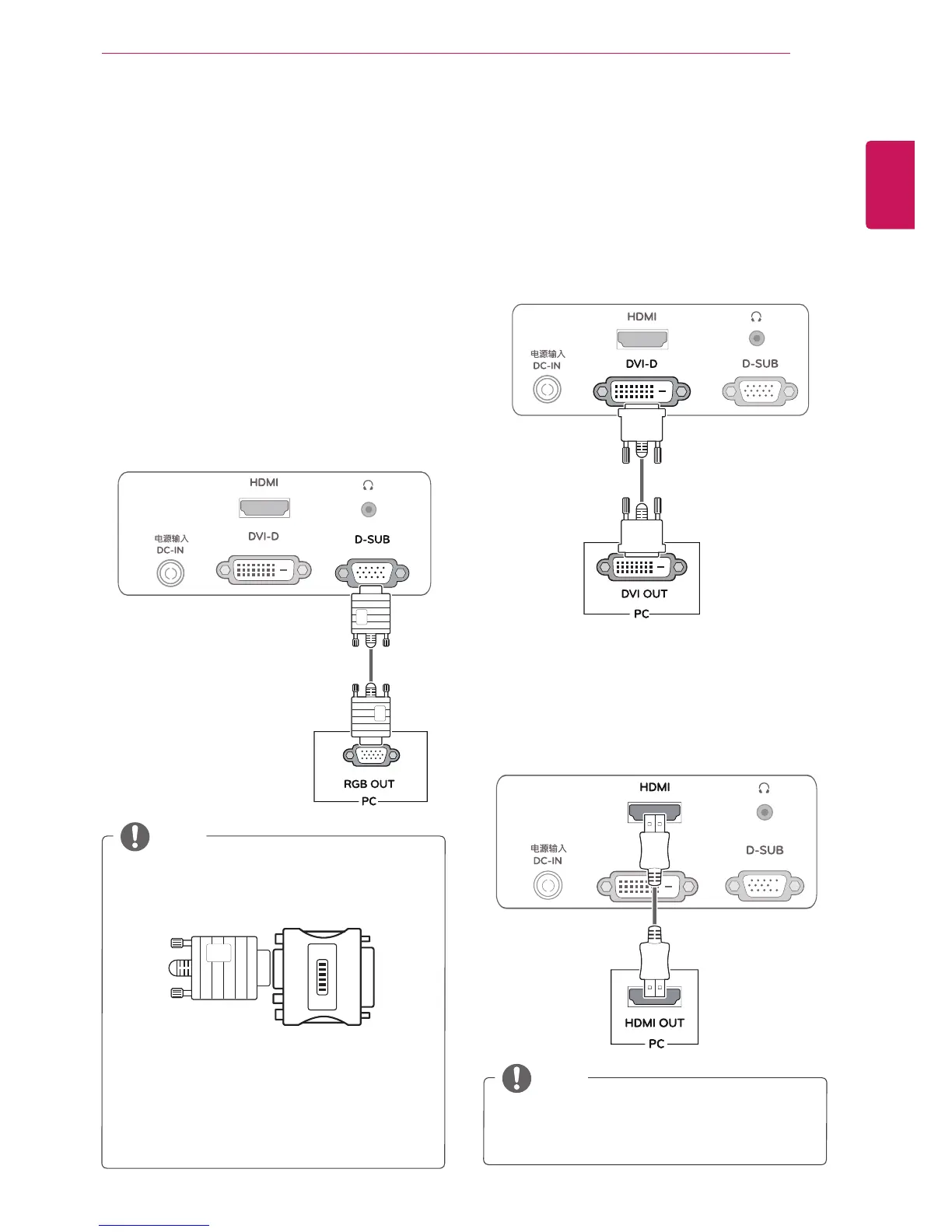 your PC to the Monitor set. Connect the PC and