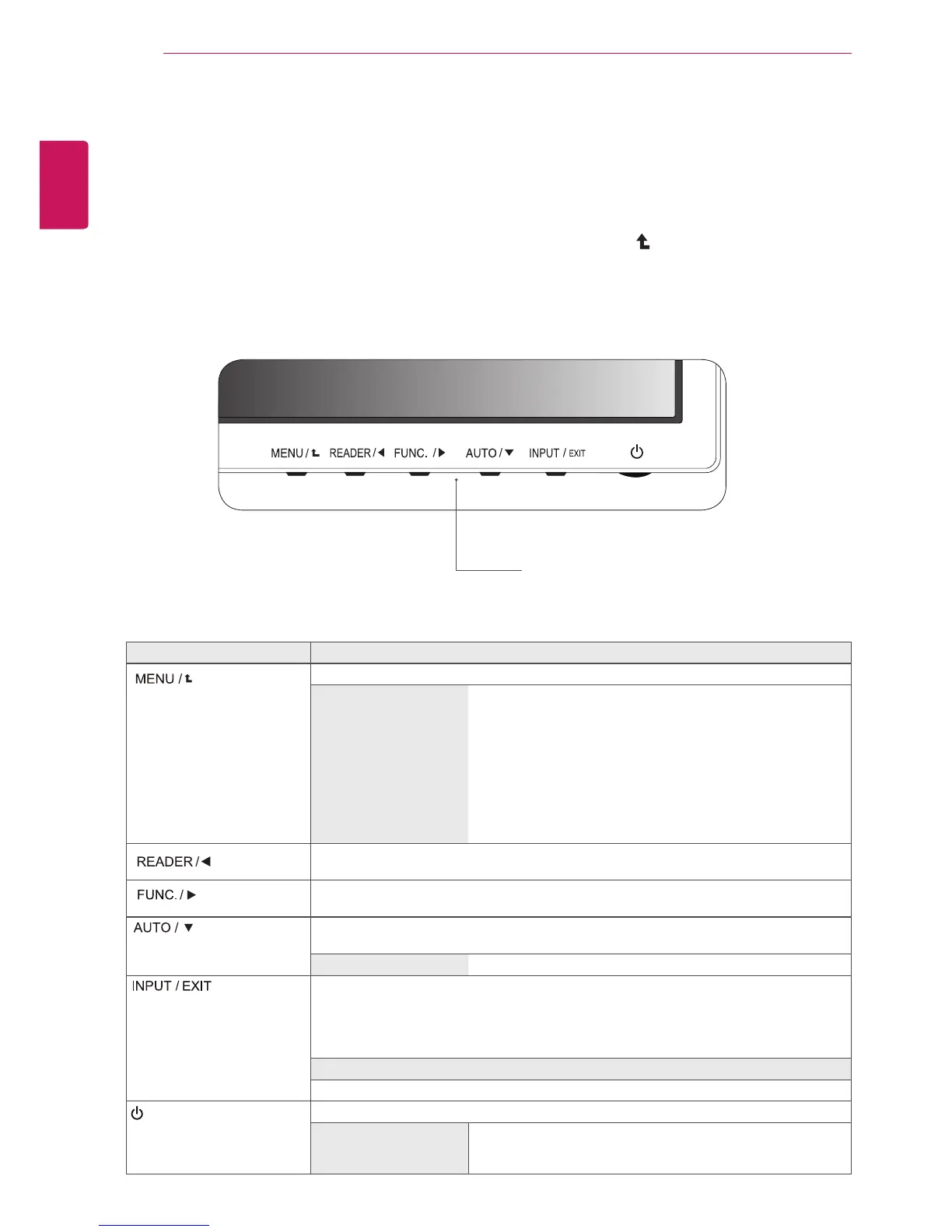 Use this button to enter Reader Mode menu. Its function works to display screen as