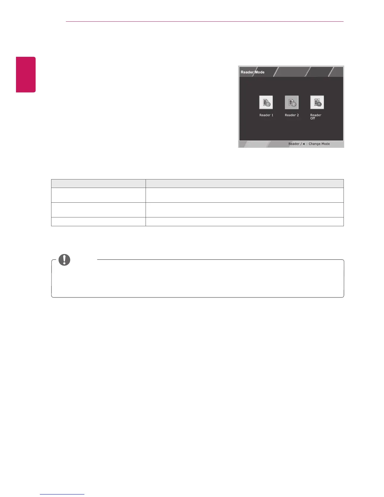 If option of Reader Mode is Reader 1 or Reader 2, Picture Mode will automatically be Custom and