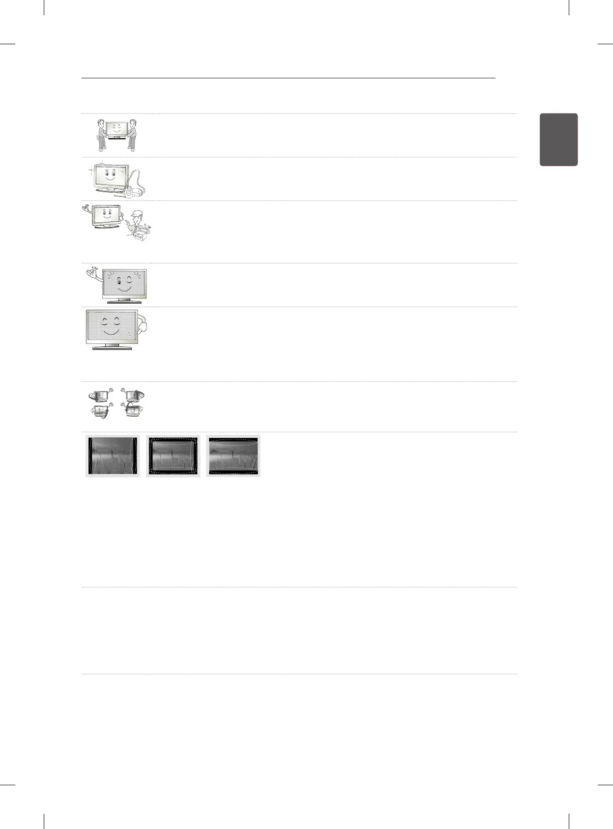 Also, if you watch the TV at a ratio of 4:3 for a long time, image sticking may occur on the borders of