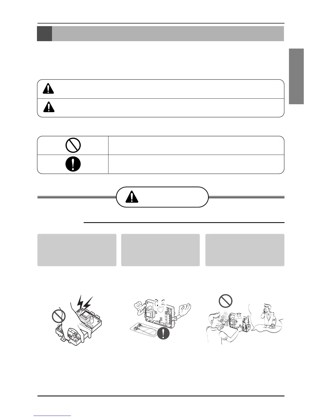 ■ Incorrect operation due to ignoring instruction will cause harm or damage. The seriousness is