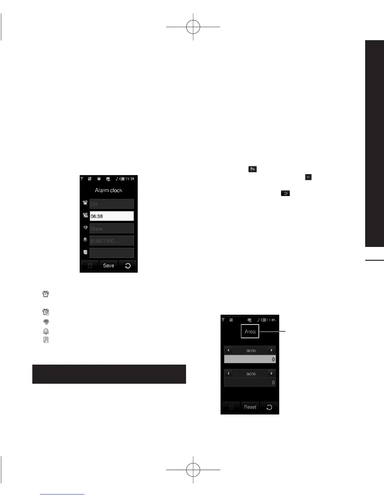 such as alarm, calculator, world clock, unit