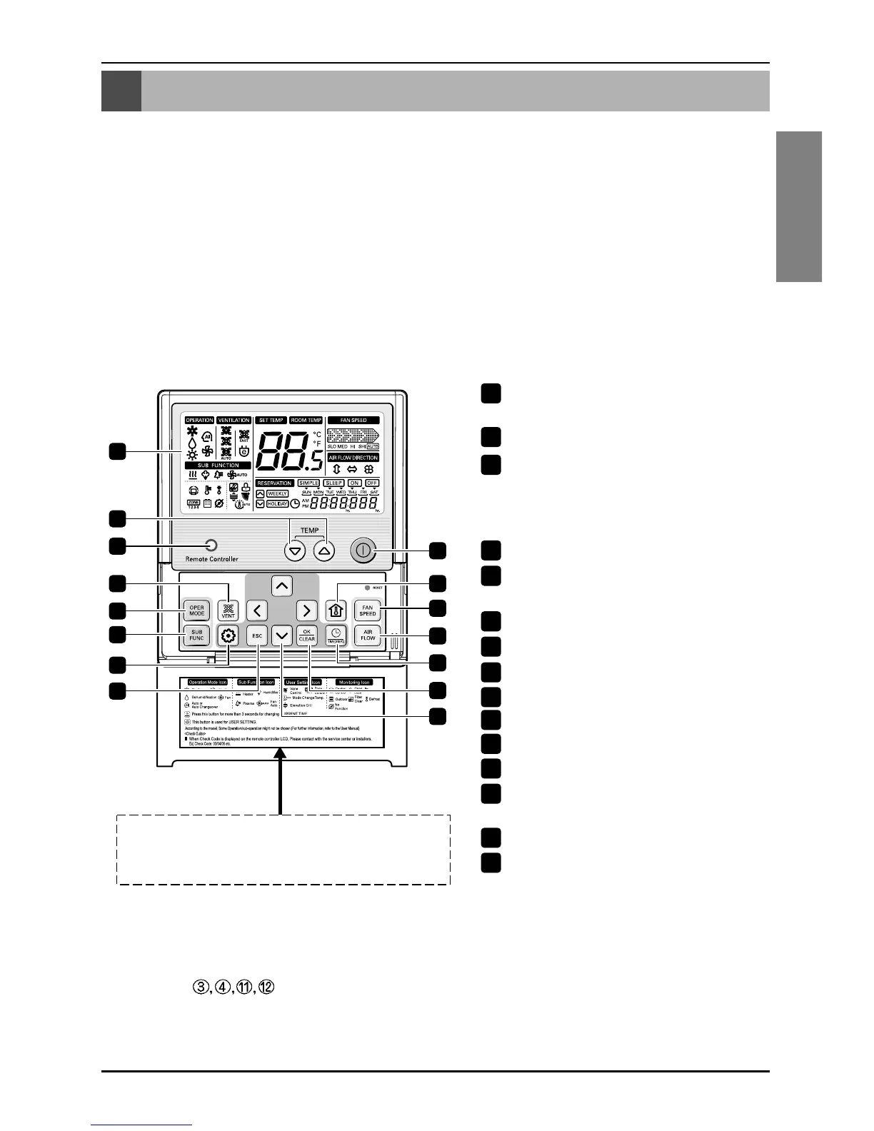 * For more detailed function of the wired remote controller, refer to the Owner's &