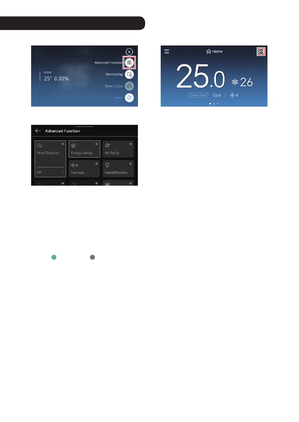 You can select only select Setting or Cancel for the functions of small buttons without detailed settings.