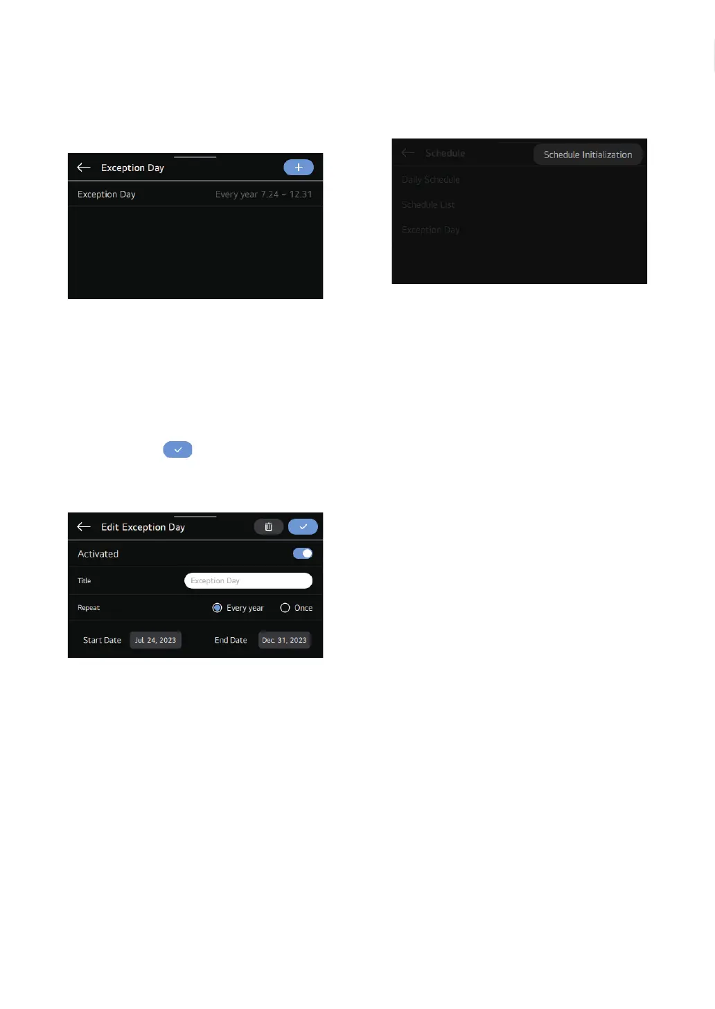 To add an exception date, designate the start / end date