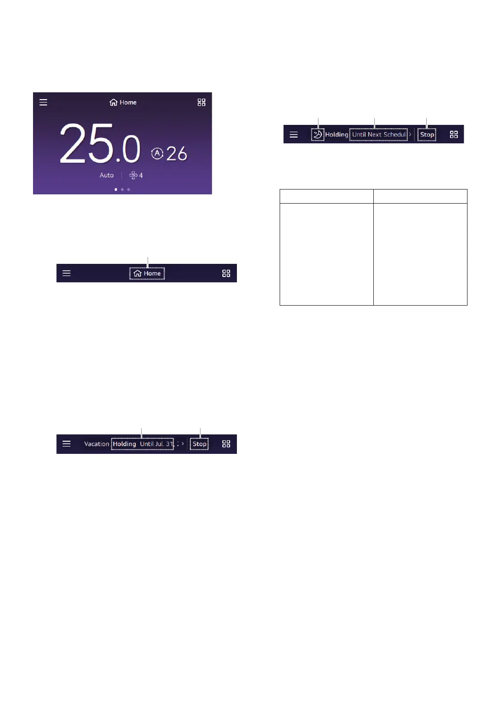 ① Displays the type of schedule hold.