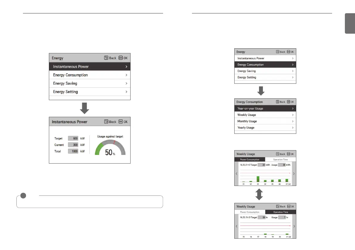 • In the energy list, select the “energy consumption” category, and press [OK] button to move to