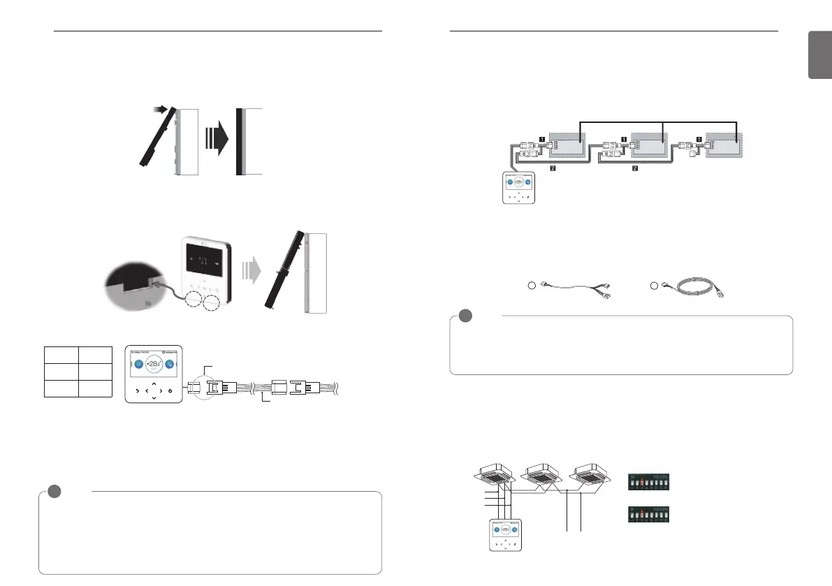 • Use the connection cables to connect the indoor unit with the remote controller.