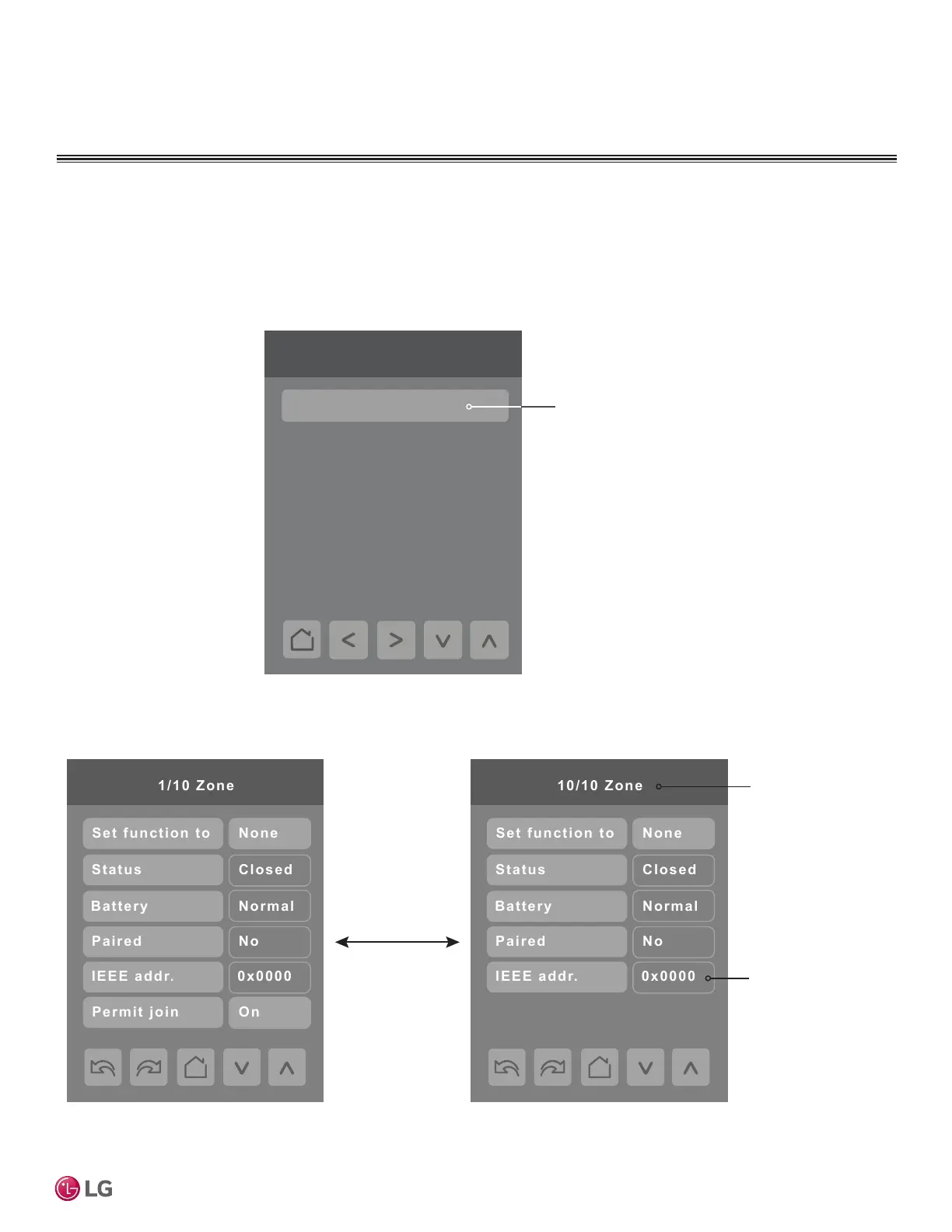 such sensor is described in a separate Zone screen, up to a maximum of 10 Zones. Press the left and