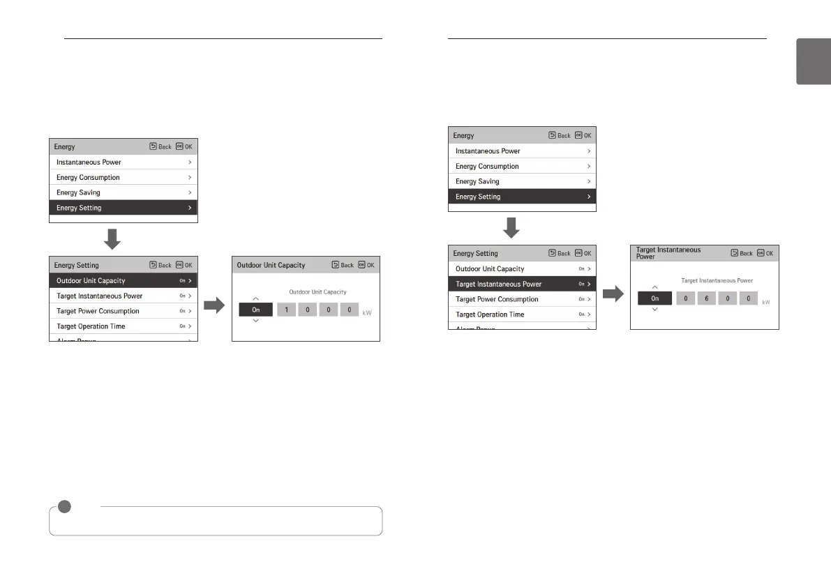 • In the energy setting list, select “outdoor unit capacity setting” category, and press [OK] button