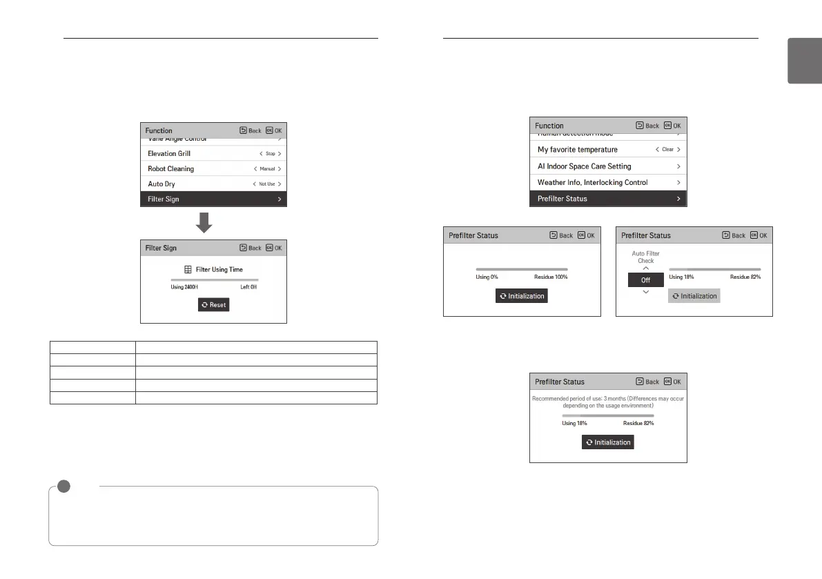 filter cleaning message is not displayed, you can enter the Filter sign check and initialization.