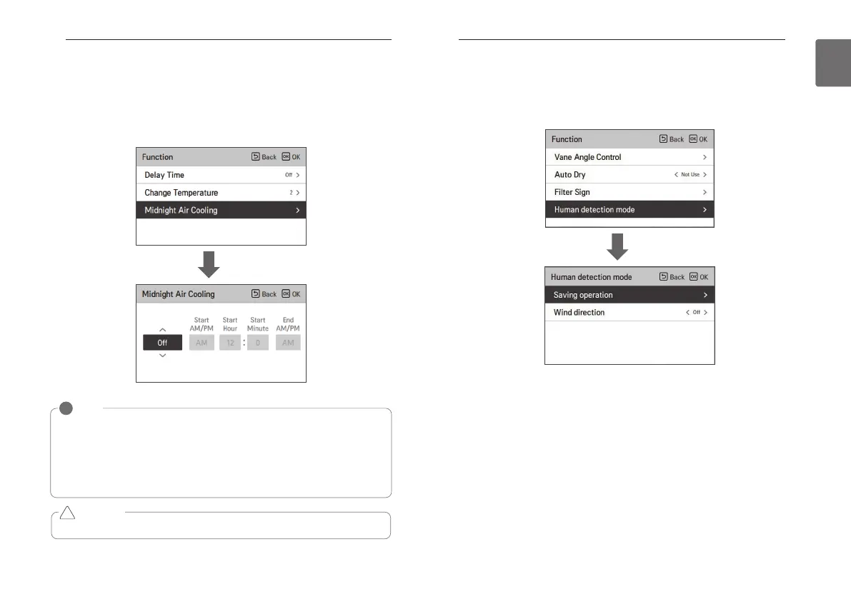 • In the function setting list, if you select midnight outdoor air cooling category and press [OK]