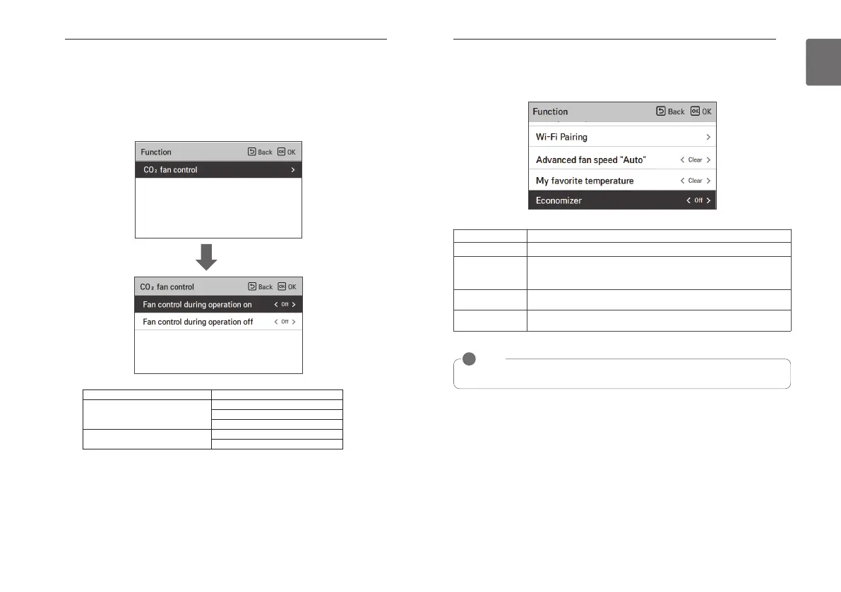 After selecting “CO2 fan control” in the Function settings list, press the [OK] button to go to the detail screen.