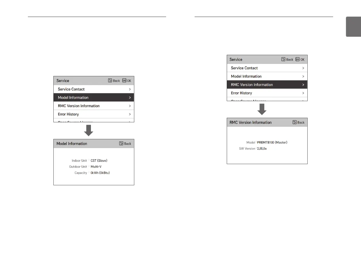 • In the service setting list, select the remote controller version information check category, and