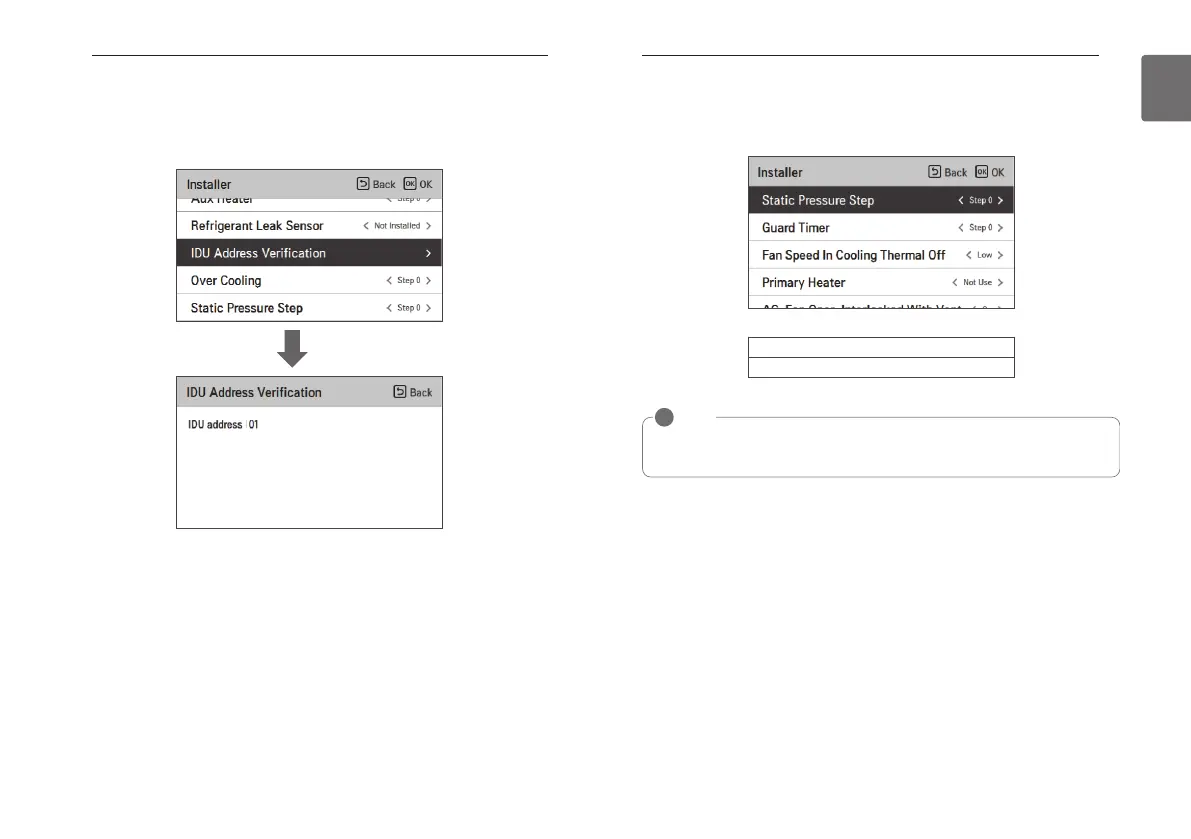 For the Static pressure step value for each stage, refer to the indoor unit product manual