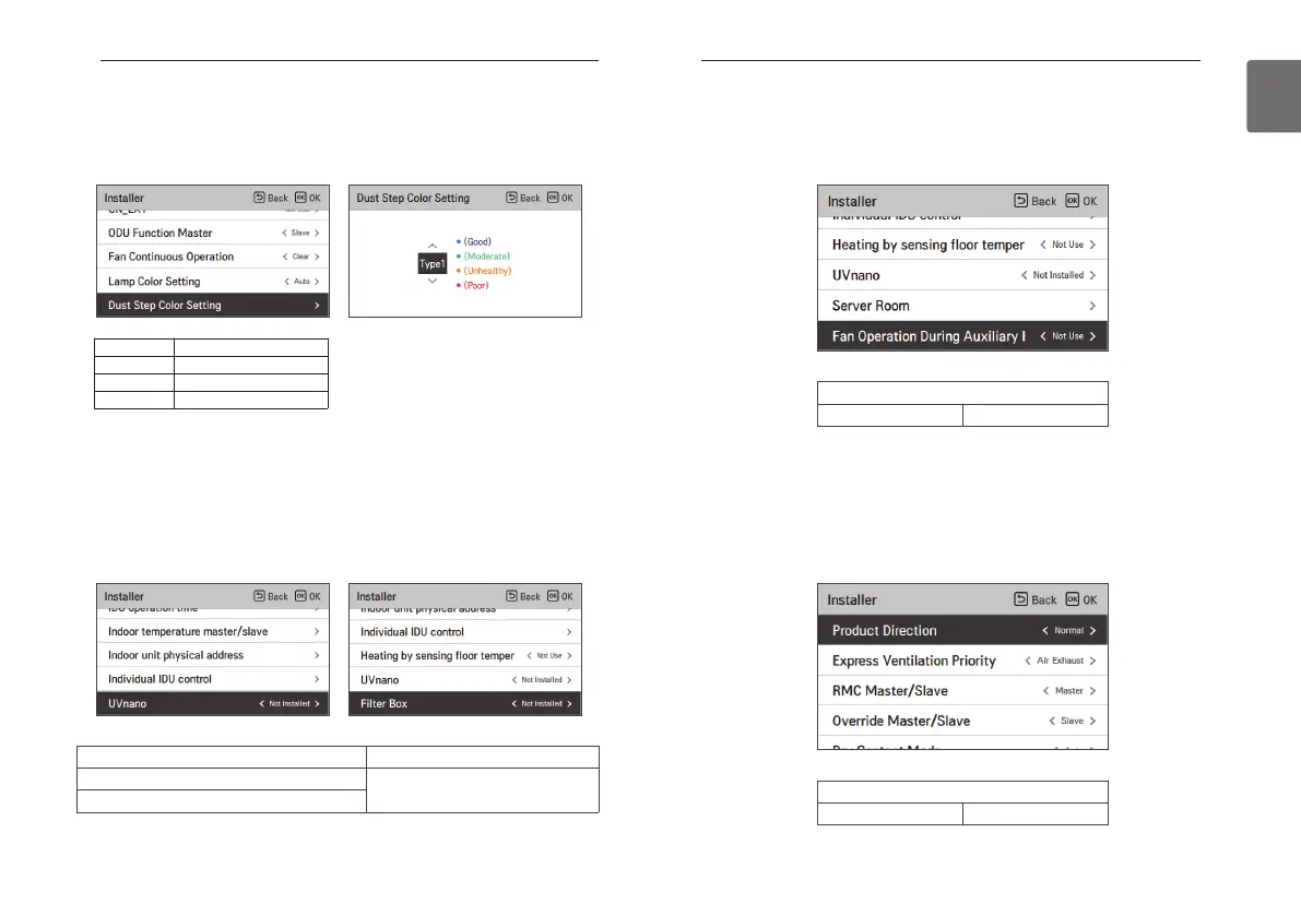 • In the install setting list, select the dust step color setting category and press [OK] to open the