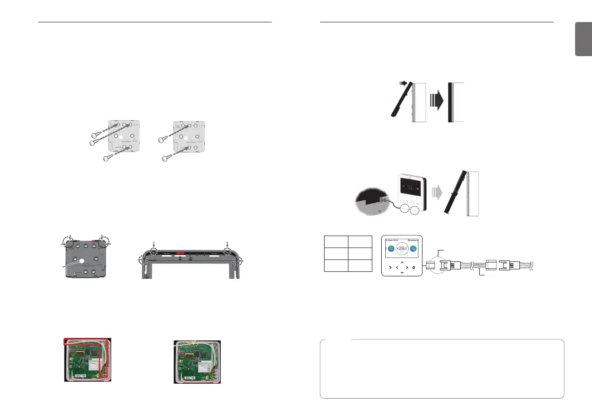 • After fixing the remote controller installation plate on the desired location, fix it firmly with the