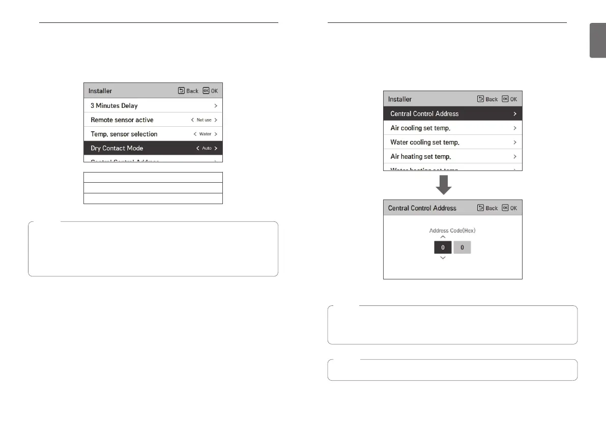 • In the installer setting list, select Central Control Address category, and press [OK] button to