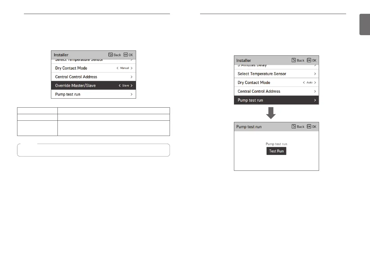• In the installer setting list, Pump Test run category, and press [OK] button to move to the detail