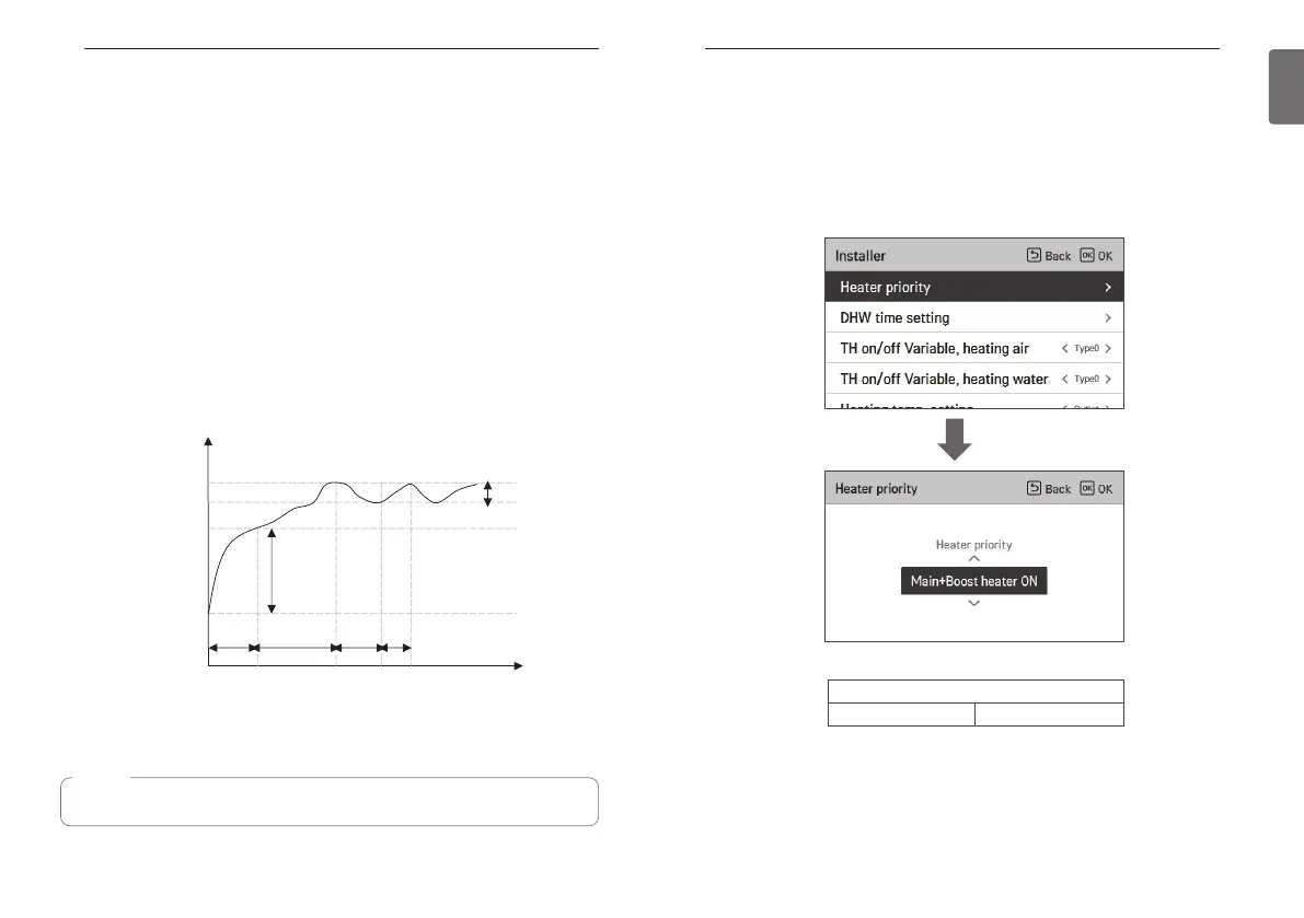 - Example : If Heating priority is set as ‘DHW’, that means heating priority is on DHW heating,