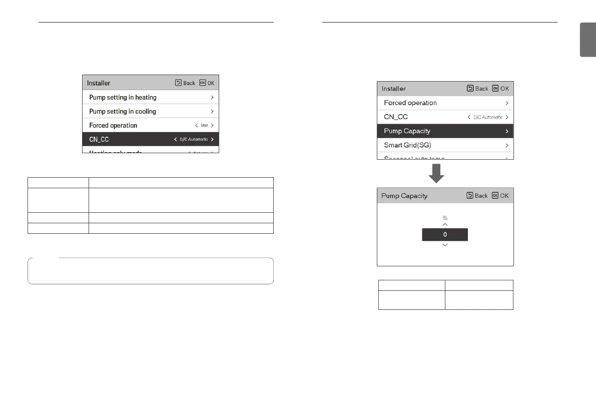• In the installer setting list, select Pump Capacity category, and press [OK] button to move to