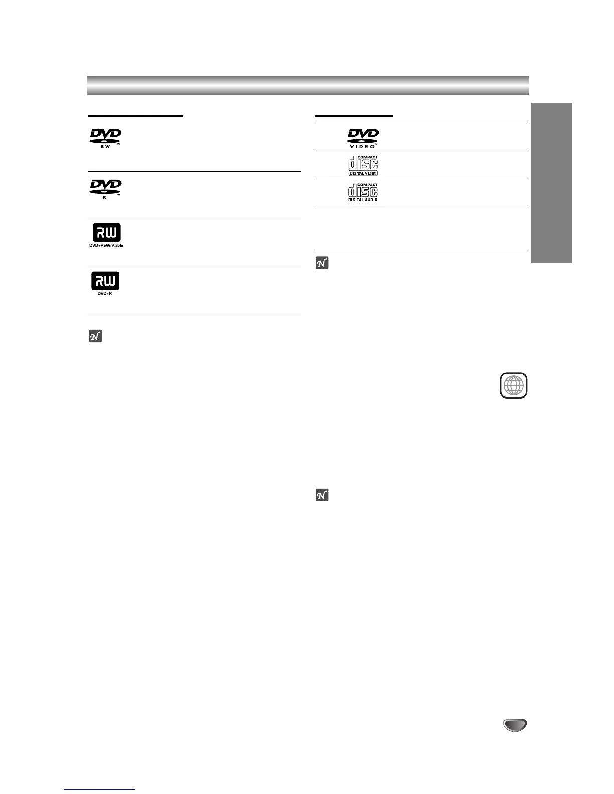 – DVD-R/RW, DVD+R/RW and CD-R/RW discs record-