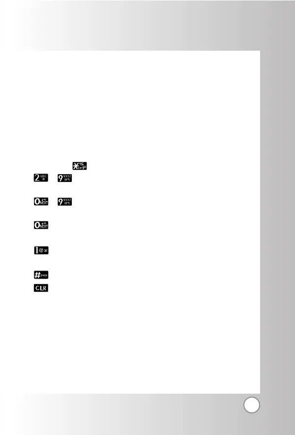 ~ (Type Text): In T9 mode, press one key per letter