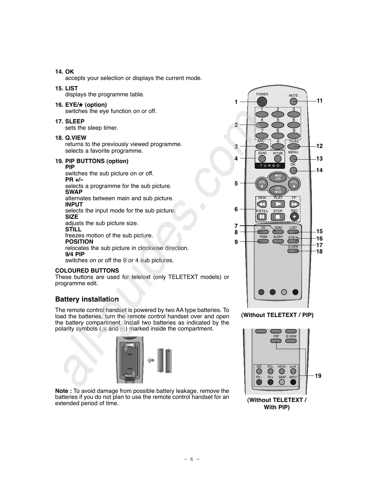 batteries if you do not plan to use the remote control handset for an