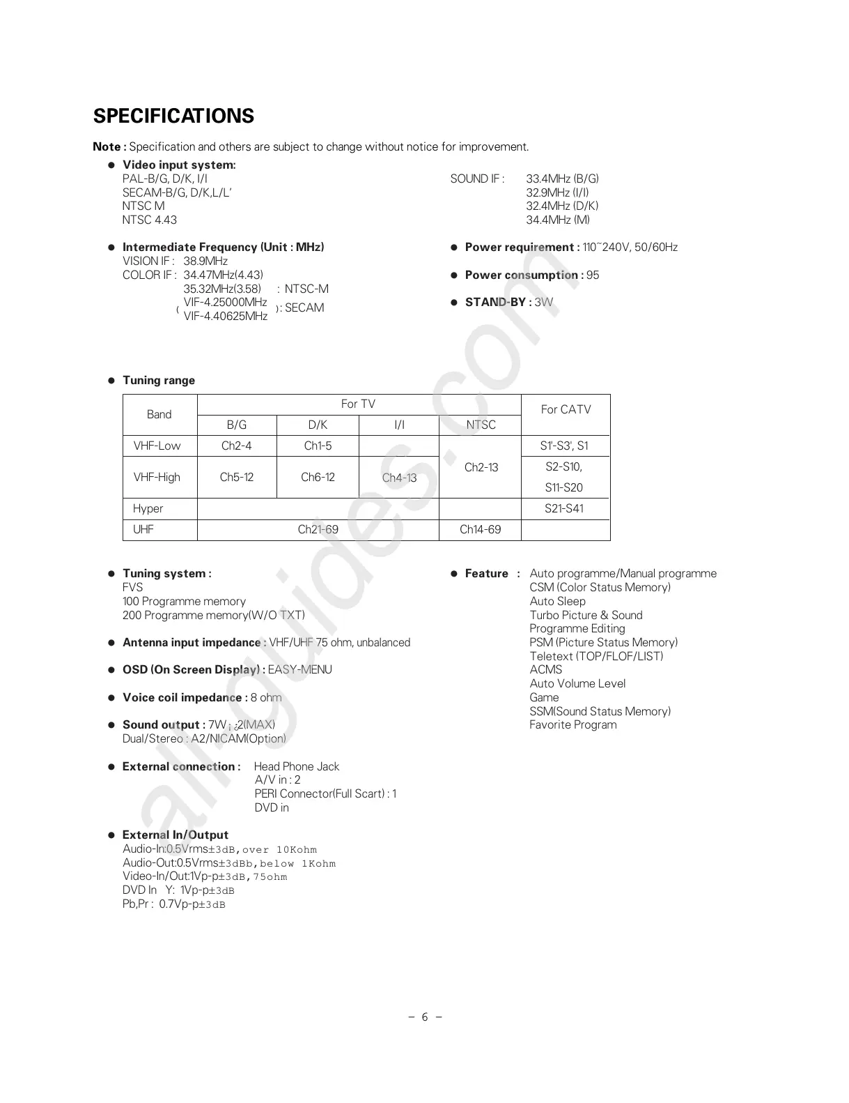 SOUND IF : 33.4MHz (B/G)