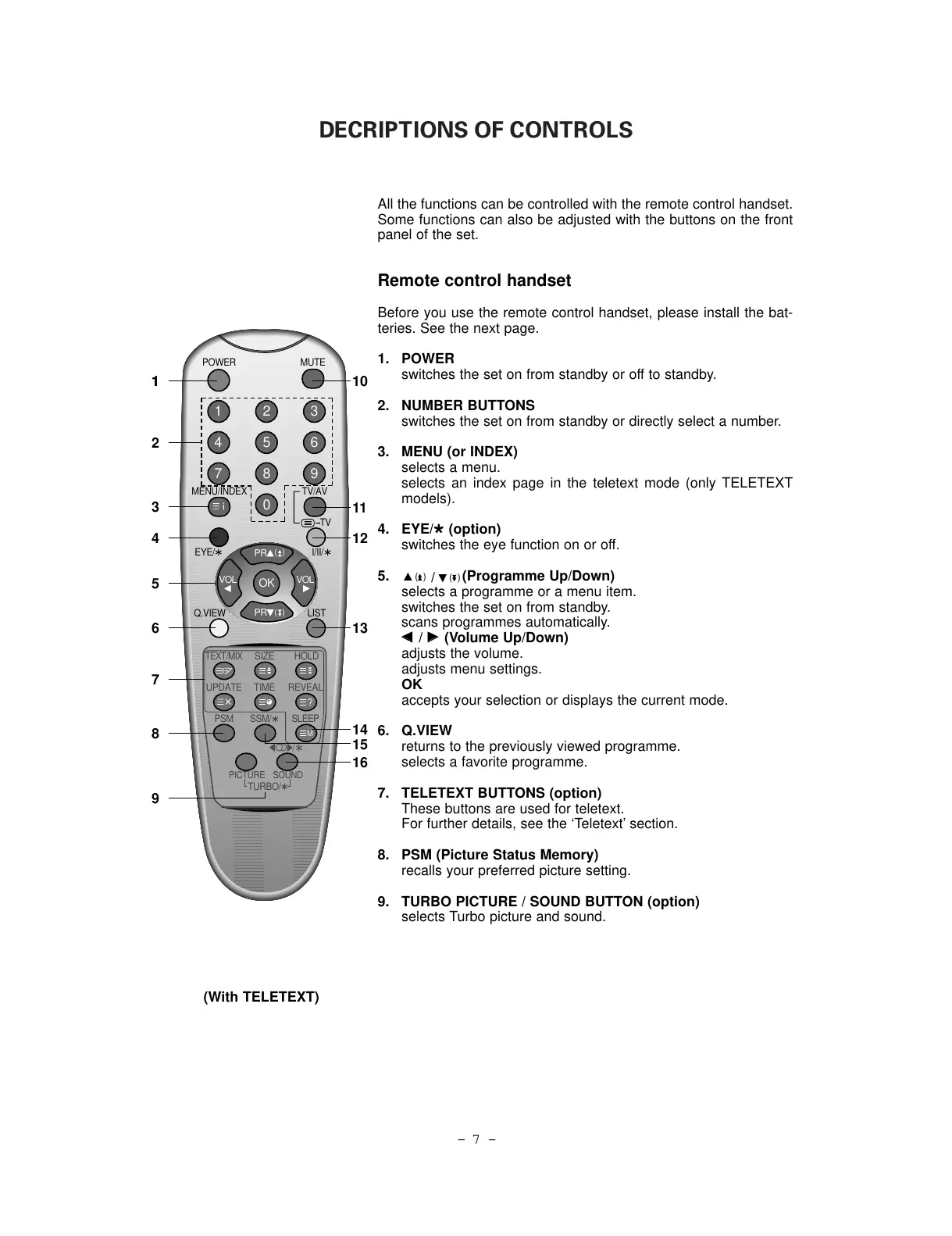 7. TELETEXT BUTTONS (option)