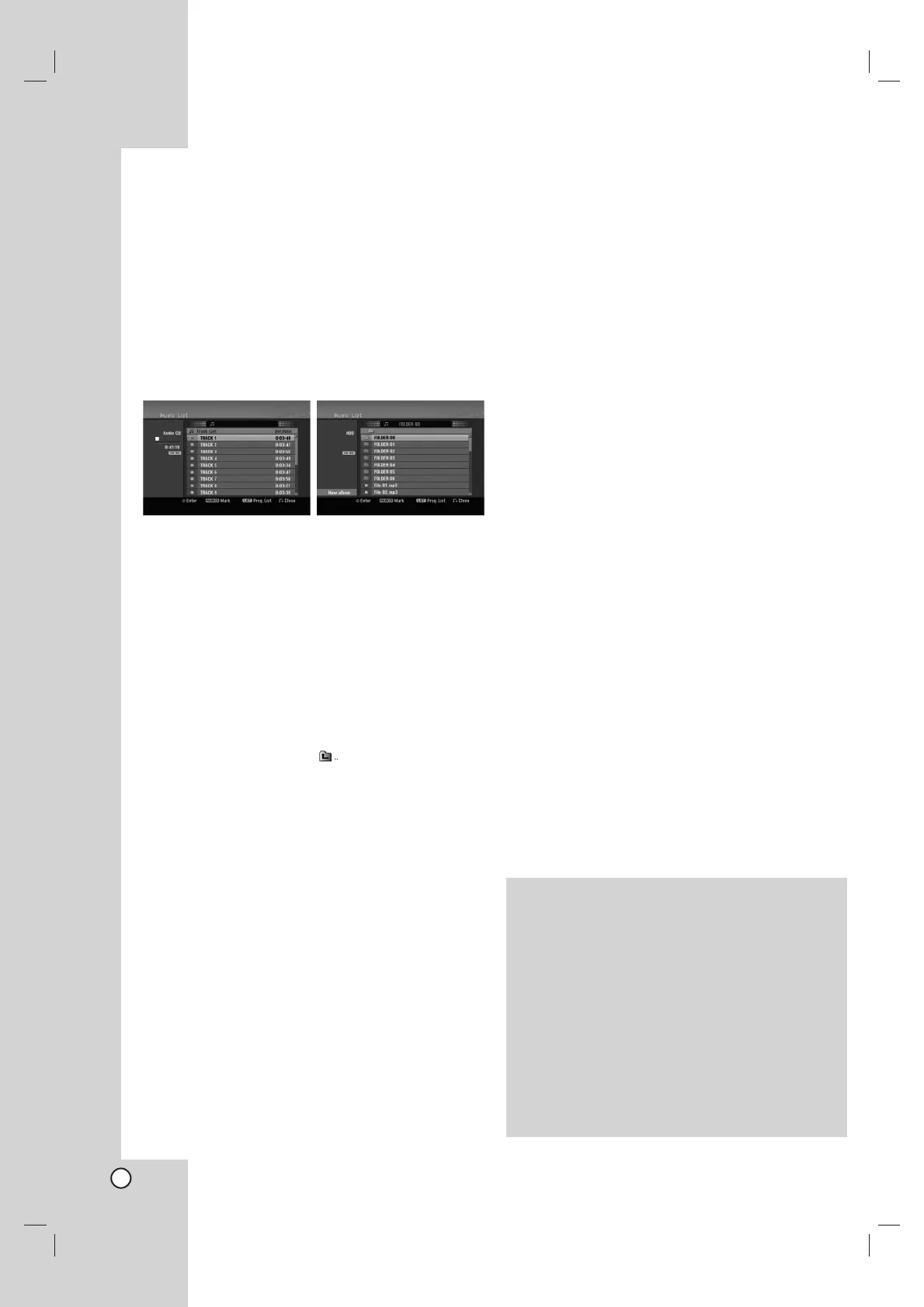 The recorder can play audio CDs and MP3/WMA files.