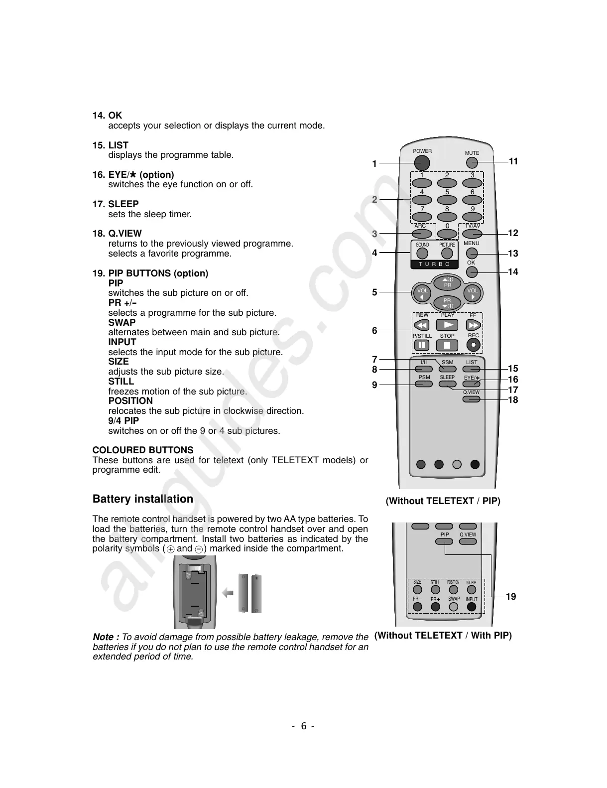 batteries if you do not plan to use the remote control handset for an