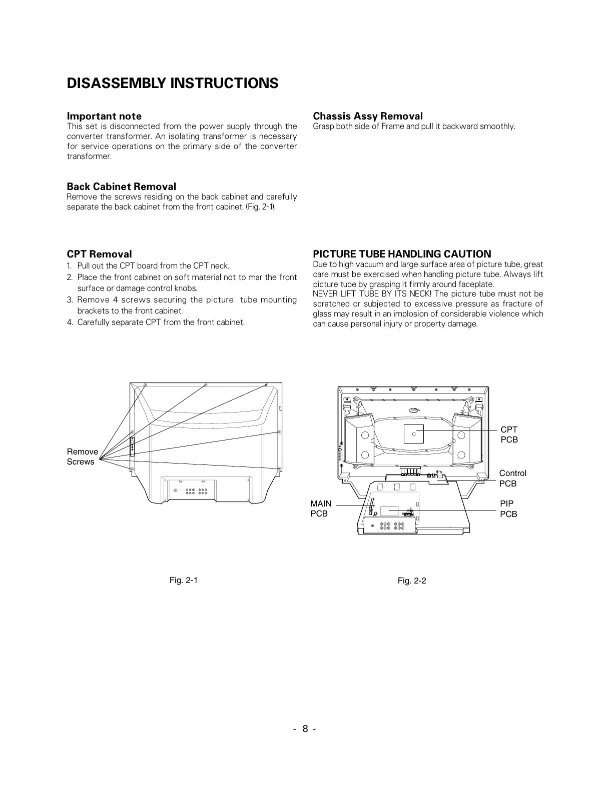 separate the back cabinet from the front cabinet. (Fig. 2-1).